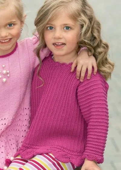 Хорошенькие девочки и кофточки. Начала сегодня внучке вязать кофточку и не придумала, как закончить низ( начала сверху регланом) теперь знаю, спасибо за подсказку!