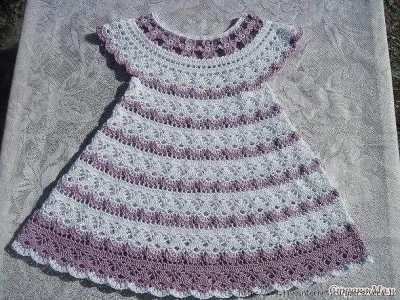 Платьице супер. Я такое вязала. У схемы есть особенность, если делать прибавки именно по ней, то платье получается очень пышныц (солнышко).