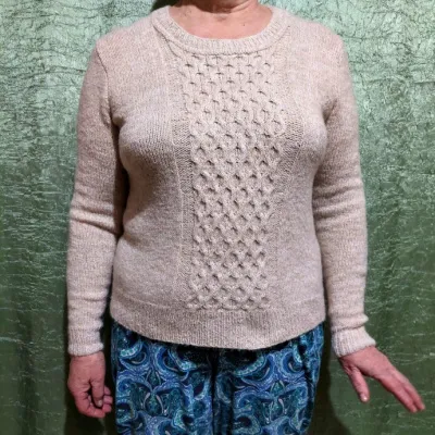 Это подарок бабуле на Новый год. На фото джемпер на довольной подарком хозяйке.