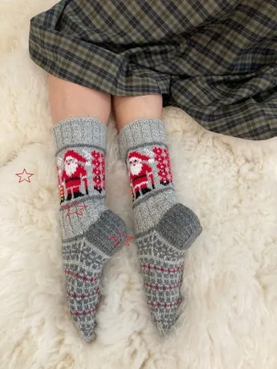Носки Санты, вяжем спицами