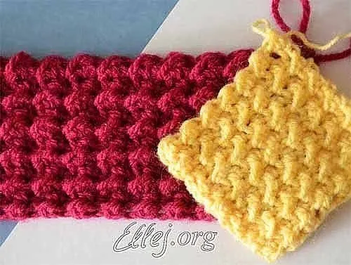 Очень простой рельефный узор, который состоит из полустолбиков и соединительных петель, а точнее, их чередования. Узорчик текстурный с обеих сторон. Несмотря на всю простоту, нужно не запутаться в начале ряда. Если ряд закончился полустолбиком — следующий начнется со слепой петли и наоборот.