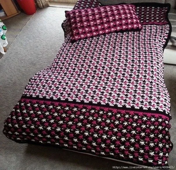 Я сделала его - одеяло из польских звезд! Оно получилось довольно толстое и теплое. Для этого одеяла нужно много ниток, его вес 2,5 кг. Крючок № 5. Размер в готовом виде 220х140 см.
