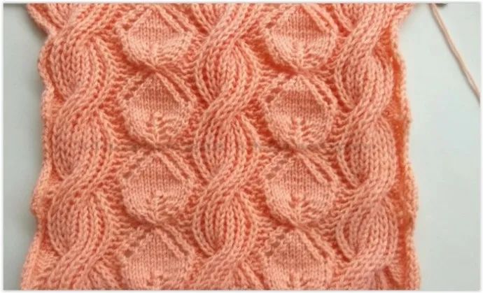 Комбинированный узор состоит из дорожек ажурных "листиков" и жгутов из английской резинки. «Листики» расширяются за счет прибавления новых петель. Широкая часть листиков соответствует самой узкой части жгута, когда происходит перемещение петель и наоборот, начало образования «листика» соответствует самой широкой части жгута из английской резинки. Поэтому происходит выравнивание ширины полотна.