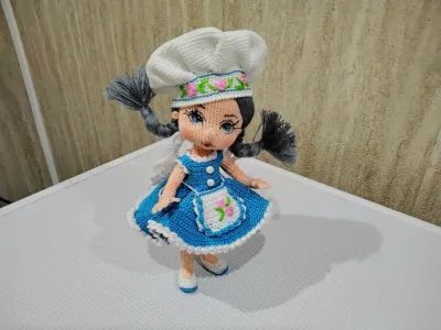 здравствуйте, очень долго не брала в руки крючок, у меня всегда так, если взяла в руки спицы, то надолго. Вот взяла крючок, спицы всторону тоже надолго. Связала куколку по МК oksana_somati,куколка связана из хлопковой нити крючок 0,7. Рост 18 см, с колпаком 23см. Куолка на проволочном каркасе,стоит самостоятельно, глазки вышиты мулине, вышивала первый раз,шапочка,туфельки снимаются.