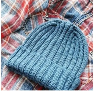 Соединяем оставшиеся петли в круг, провязав их вместе лицевой, стягиваем и заправляем нить. Мужская вязаная шапка готова!