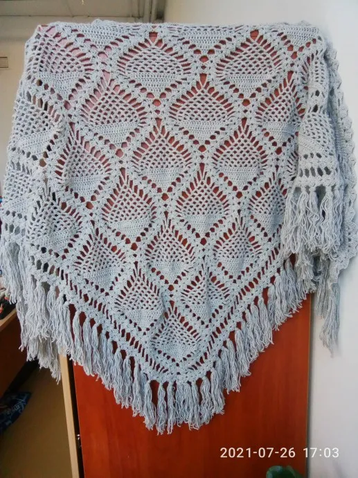 Такая шаль всегда в тренде, как сейчас модно говорить. И в пир и в мир, везде красиво в таком наряде, браво!