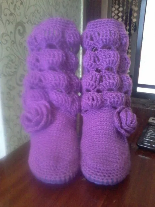 сапожки вязались давно - года 4 назад но сохранилось фото только этих,была еще одна пара красненькие и сумочка к ним,но не нашла