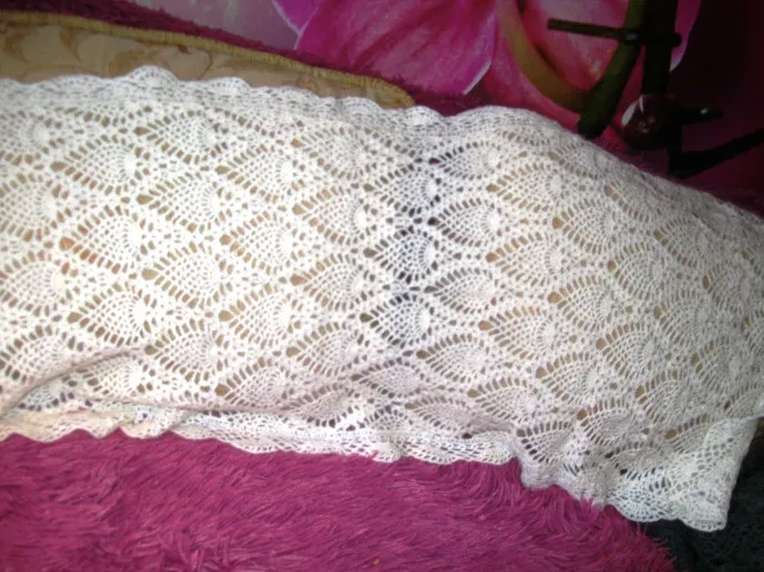 Палантин. Узор взят из" Страномамочка", -ананасы. Белая пуховая нитка.