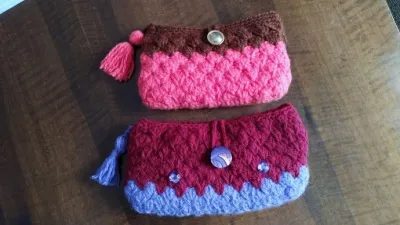 Предлагаю вашему вниманию яркие косметички вязаные крючком из остатков пряжи. Косметички размером 10 на 18 см. и 12 на 20 см.Крючок № 3.Косметички без подкладки,застегиваются на пуговицу.