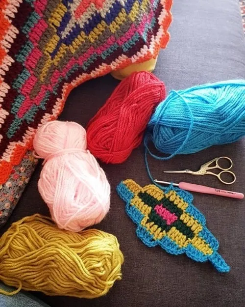 Дочка моя сказала, что это мексиканский плед. И правда, есть что-то в подборе цвета перуанское и мексиканское.