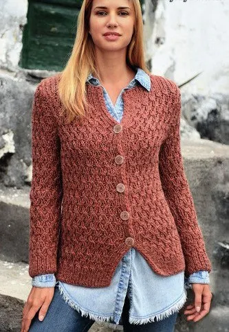 Жакет структурным узором спицами