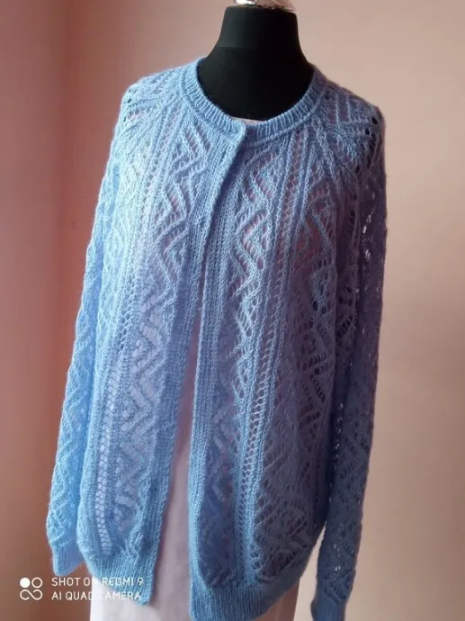 Ажурный кардиган, небесного цвета.