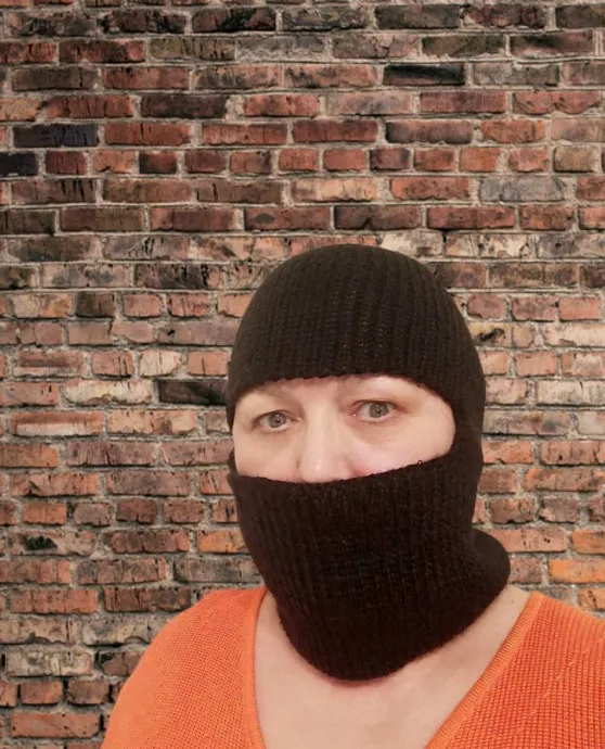 Никакой игры, эту балаклаву вязала на заказ, просто показала связанную на себе