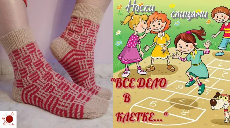 Носки спицами. "ВСЕ ДЕЛО В КЛЕТКЕ".