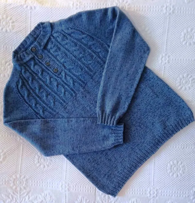 Почему такое странное название? Пряжа семеновская Лидия, 50% шерсть, 50% акрил, 1613м/100гр, цвет 7297 ГРОЗА))). Но это вспомогательная нить. Основная - ярнарт джинс, 55% хлопок, 45% полиакрил, 160м/50гр, цвет 68, ушло неполных 8 моточков(400г) и неполный моток семеновской. Спицы №4, резинки 3,5 и 3. Пуговки тоже темно-синие с молниями, поэтому и свитер "Перед грозой" . Давно хотела попробовать реглан-погон, но сама не решилась, поэтому вязала по МК Елены Канаевой, но с поправками на своего мужчину. Конечно есть замечания, сама бы я так ворот и застежку вязать не стала бы, но перевязывать не буду. Посмотрим как будет в процессе носки. Строго не судите, но буду рада замечаниям, сделанным в корректной форме. Размер 50-52.