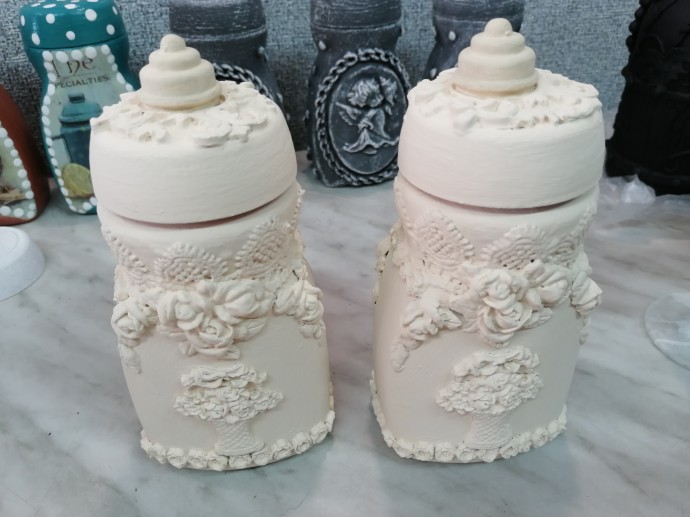 Приветствую вас, дорогие рукодельницы. Сегодня поделюсь с вами тремя способами декора стеклянных банок и одним из способов утилизации мусора, который периодически у меня скапливается и ждет своей очереди на переделку. Баночки можно использовать для хранения сыпучих продуктов, различных материалов для творчества, швейной фурнитуры и различных мелочей. Мои баночки уже нашли свою хозяйку. Материалов для использовала самые простые, молд, кружево, акриловые краски, акриловый лак, клей ПВА, полимерный клей "Титан", самозатвердевающая масса для лепки, ее можно заменить соленым тестом или сделать массу самостоятельно. Напишите в комментариях какой вариант понравился вам.