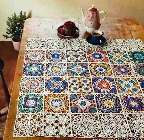 Всегда представляла скатерть ручной вязки или салфетку, связанные одинаковыми мотивами, все строго и правильно. А тут просто сказочный переполох! Неожиданно и мило.