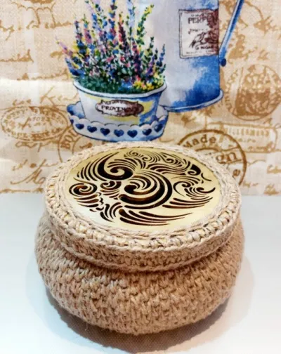 в этой шкатулке я использовала заготовку из фанеры, которую покрасила золотой краской