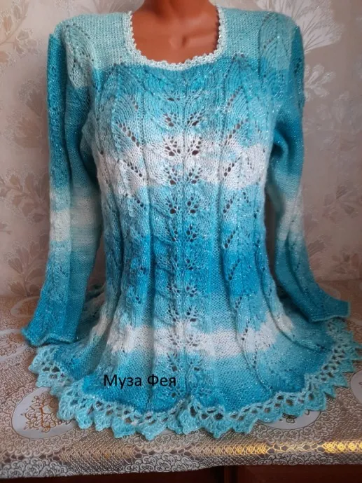 Пряжа Ализе батик симли,с люрексом, спицы -№3, 25мм. Обработка выреза. рукавов и низа - крючок №3.