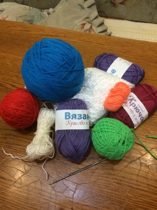 Добрый день! Решила учавствовать в конкурсе, чтобы показать что у меня получилось. Начну с самого начала. В один прекрасный день внучка попросила купить ей Смешариков. В магазине я их не нашла и стала искать на просторах интернета. Увидела вязанных героев мультика и решила попробовать их связать. Для игрушек взяла разноцветные ниточки Акрил 100%, крючок номер три, синтепон (шарики) для набивки.