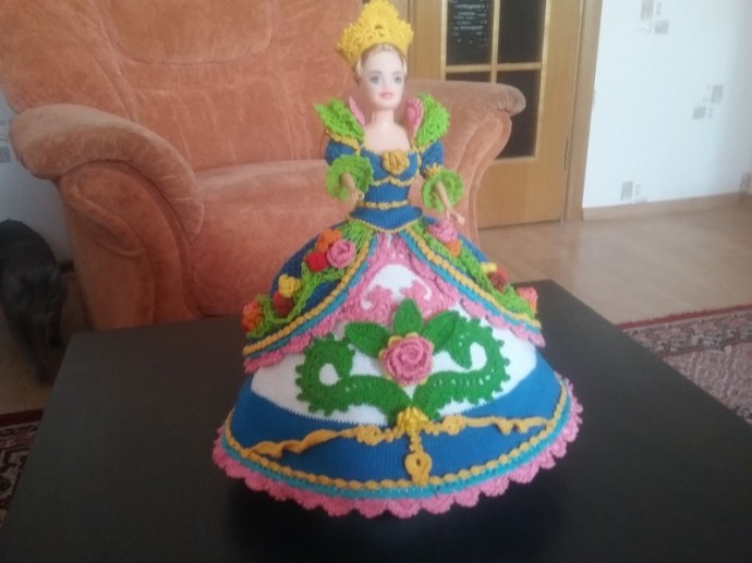 прошлую работу вязала родственнице. И, конечно, давно отдала. Внучка захотела такую же, но весеннюю, с цветами. Вот пришлось связать.