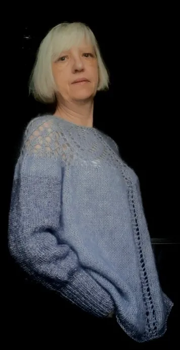 Последняя моя работа.Целая история,купила пряжу на жилет,связала пуловер
