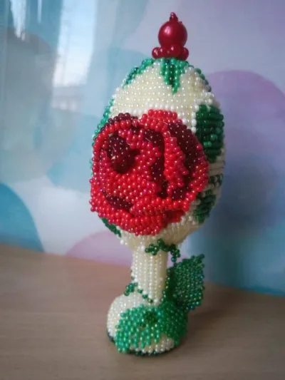 А бисером - оплетать яйца и в мозаичной технике плести цветы.