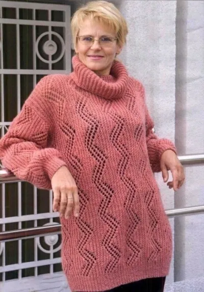 Объемный свитер с ажурным узором, вяжем спицами
