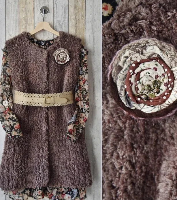 Пришейте ниткой в тон пуговицы или крючки если хотите чтобы жилет застёгивался.