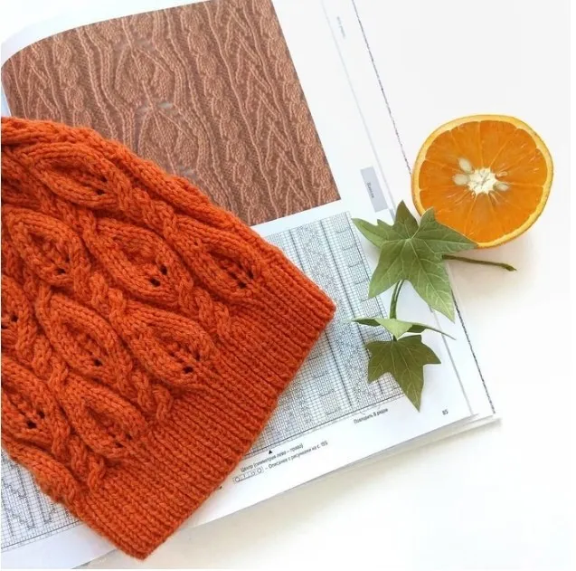 Вяжем по схеме 1,5 - 2 раппорта. В зависимости от желаемой высоты шапки. У меня 1,5 раппорта-это 2 листик по высоте.