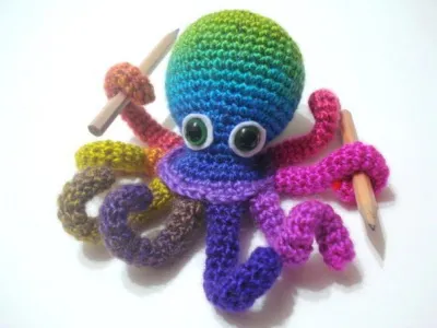 8) Осьминог готов! Если желаете, можно в качестве шляпки для осьминога связать цветочек.