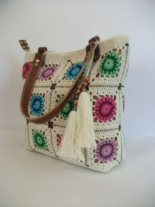 Сумочка из вязаных мотивов