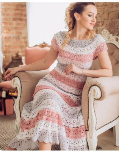 нежное платье. Я вяжу этим же узором, цвета морской волны. Но мне попала схема где идет расширение, получилось широковато, бросила. Сейчас поняла, что не той схемой пользовалась. Спасибо!