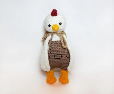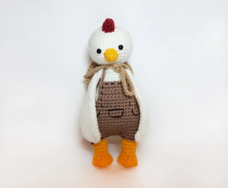 А теперь, чтобы придать ему вид настоящего мужчины-цыпы, я связала ему гребешок и клювик:
