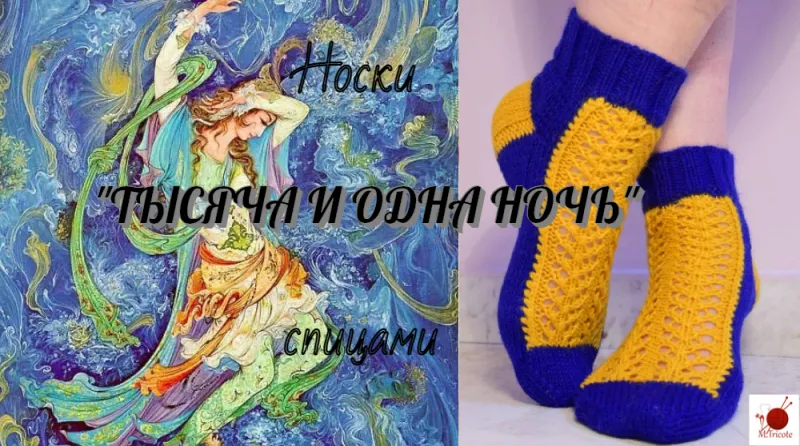 Почему "Тысяча и одна ночь" ? Потому что используя этот метод, вы свяжете тысячу и одну модель, ни разу не повторившись. Модель связана комбинированным способом и должна очень понравиться тем, кто увлечен вязанием носочков на двух спицах. Способ открывает широкие возможности для тех, чья фантазия не ограничена никакими условностями. По сути эта модель универсальная. Строго полосатая или двухцветная понравится мужчинам, ажурно-изысканная понравится дамам, с веселым жаккардом на вствке порадует деток. Модель одинаково удобно вяжется как сверху, от манжеты, так и от мыска. Варьируя пяткой, мыском, резинкой можно "РАССКАЗАТЬ" тысячу и одну волшебную "СКАЗКУ" для тех, кто любит и ценит ручное творчество. Носочки в видео связаны на размер 36-37. Пряжа 100 гр - 210 м. Спицы 2.5