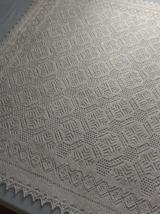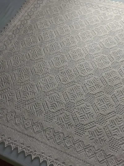 Ажурная паутинка ручной работы из козьего пуха с добавлением шелковой нити, не запрядная, схема авторская. Размер 140 х 140 см. вес 180 грамм. Продана.