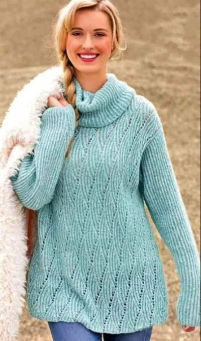 Свитер с ромбами и резинкой, вяжем спицами