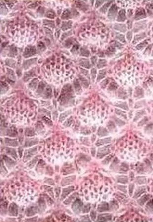 Из этого ажурного узора может получиться красивый шарф или шаль. Можно попробовать связать из мохера, ангоры или тонкой шерсти.