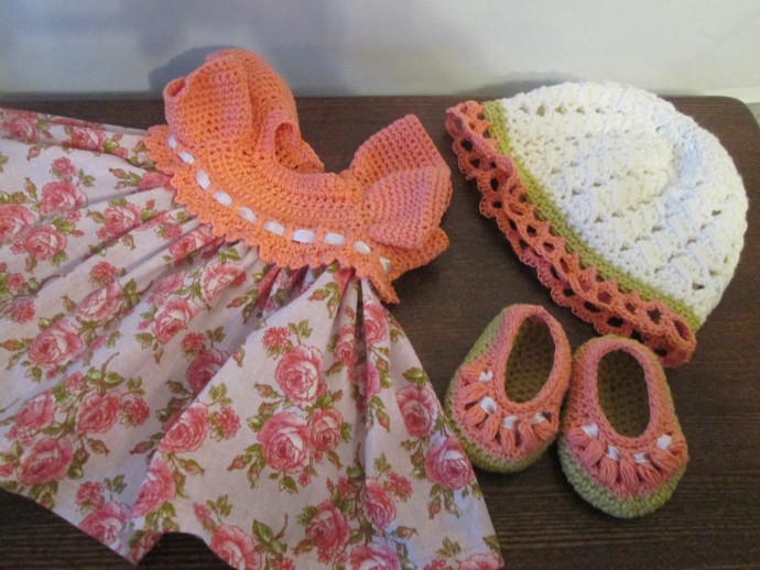 В гардероб пока входят платье,вязанные туфельки и шапочка. Все снимается.