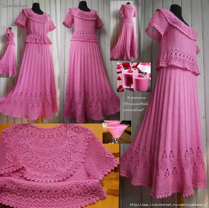 Появился на свет ещё один новый костюм. Назвала его "Малиновый коктейль", из-за ассоциации цвета пряжи с этим дивным напитком, а также, из-за некоторой схожести фрагментов узора с ягодами малины.