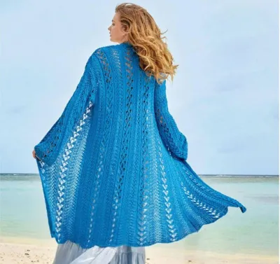 Длинный ажурный кардиган лазурного цвета