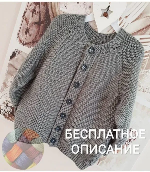 • на спицы N4 набрать 97 п, 9 рядов полупатентной резинки 1×1 ( в лицевых рядах лицевую петлю не провязываю)(81 п резинки-16 петель 8+8 планки платочкой),в 8 ряду первая дырочка для пуговиц(4 лиц.накид 2 вместе,4 дырочки через 20рядов, ВСЕГО 7 пуговиц),10 ряд все лицевые петли,11 р маркировка+переход на N5 (спинка 31,перед 18+18,рукава по 11 петель,8 регланые петли)