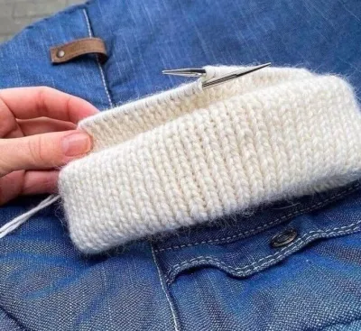 4. Считаем, сколько петель в 10 см, чуть растянув резинку. Делим полученное число на 10 и умножаем на свой обхват головы. Для подворота прибавьте пару сантиметров.