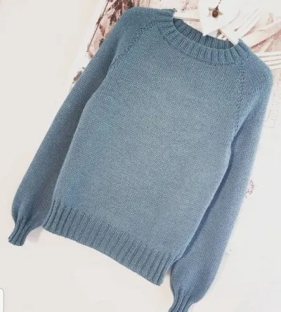на спицы N4 набрать 128+1,замкнуть в круг ,12 рядов резинки 2×2 ,13 ряд лицевой на N5 +маркировка,спинка 40п,перед 48п,рукава по 16п,8 петель на реглан ,( изнаночные петли или платочная вязка)
