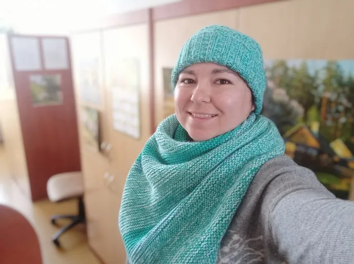 Привет, рукодельницы. Недавно закончила свой проект для холодной весны. Шапку уже активно ношу, а вот бактус оставлю на осень, пока в нем жарко.