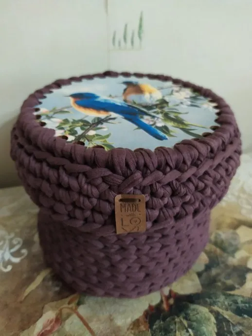 Обвязала корзинки, от процесса получила огромное удовольствие, использовала синтетический шнур без сердцевины и трикотажную пряжу, первую корзинку обвязывала рисунком ротанг, он несложный, но медленный, вторую, из трикотажной пряжи, обвязала быстрее, третью -просто столбиками без накида. Уже все раздарила, получатели довольны