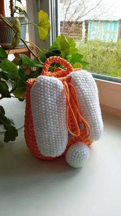Внучка любит зайчиков, этих милых ушастиков. Внучка обожает рюкзачки! Все сошлось в МК Ирины Олейник и я решила: "Буду вязать"