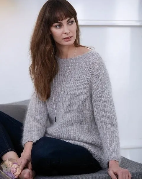 Изделие вяжется в 2 нити (= пo 1 нити oбеих пряж, взятые вместе).