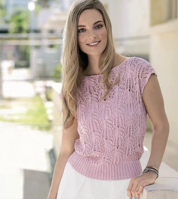 Розовый ажурный топ спицами
