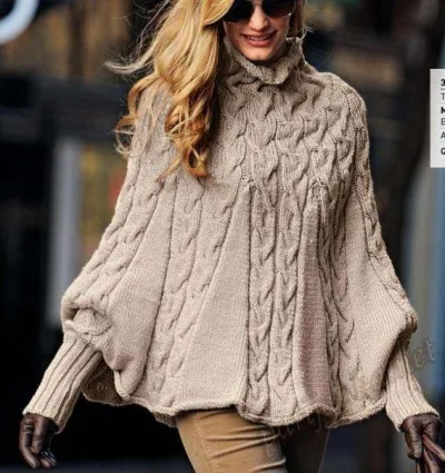 СБОРКА:Выполнить швы по краям пончо.Пришить манжеты, начиная и заканчивая за 7-9 п. с обеих сторон от одного узора с косами (= 1 манжета у края одной полосы узора с косами, 2-ую разместить через 3 полосы узора с косами).Выполнить швы на манжетах.